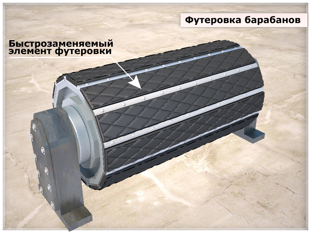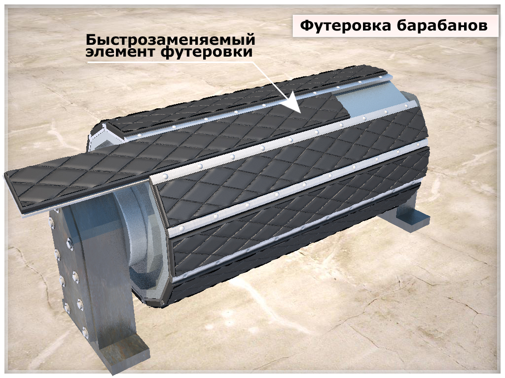 Так в чем же уникальность данной технологии футерования приводных барабанов быстросъемными элементами футеровки ООО «Футурум»?